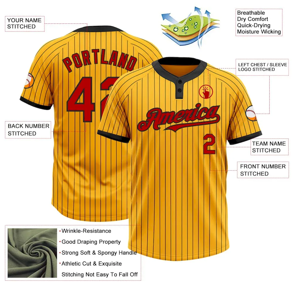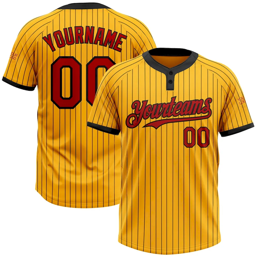 Custom Gold Black Pinstripe Red Two-Button Unisex Softball Jersey