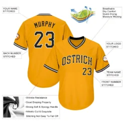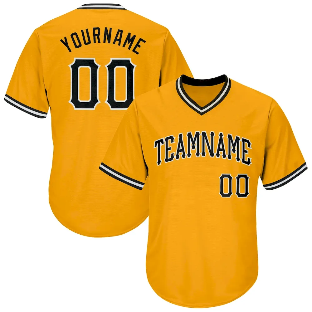 Custom Gold Black-White Authentic Throwback Rib-Knit Baseball Jersey Shirt