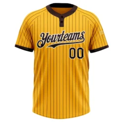 Custom Gold Brown Pinstripe White Two-Button Unisex Softball Jersey