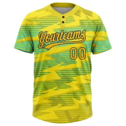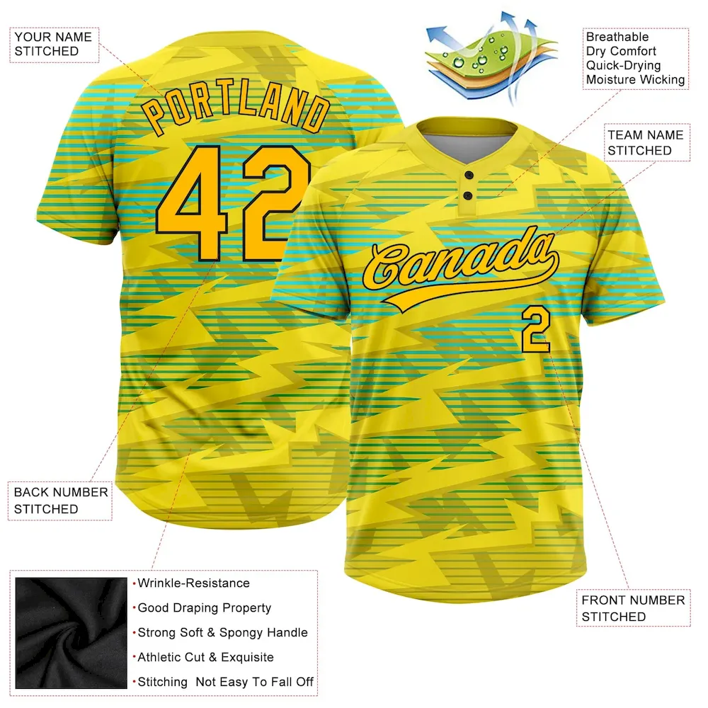 Custom Gold Gold Black-Light Blue 3D Pattern Two-Button Unisex Softball Jersey