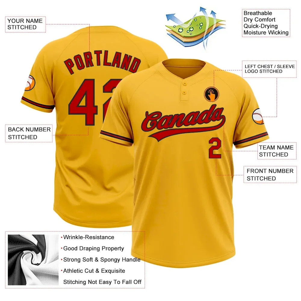 Custom Gold Red-Black Two-Button Unisex Softball Jersey