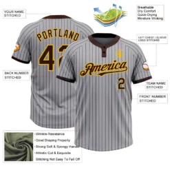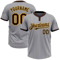 Custom Gray Brown Pinstripe Gold Two-Button Unisex Softball Jersey