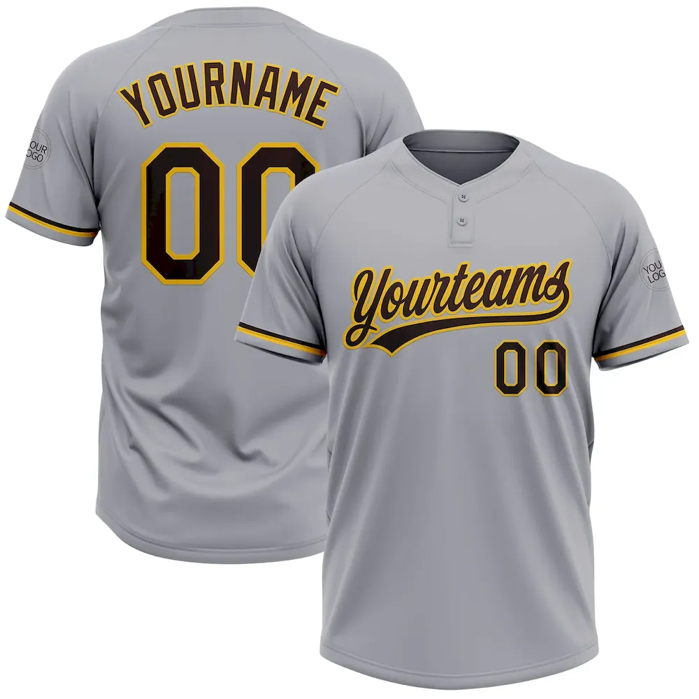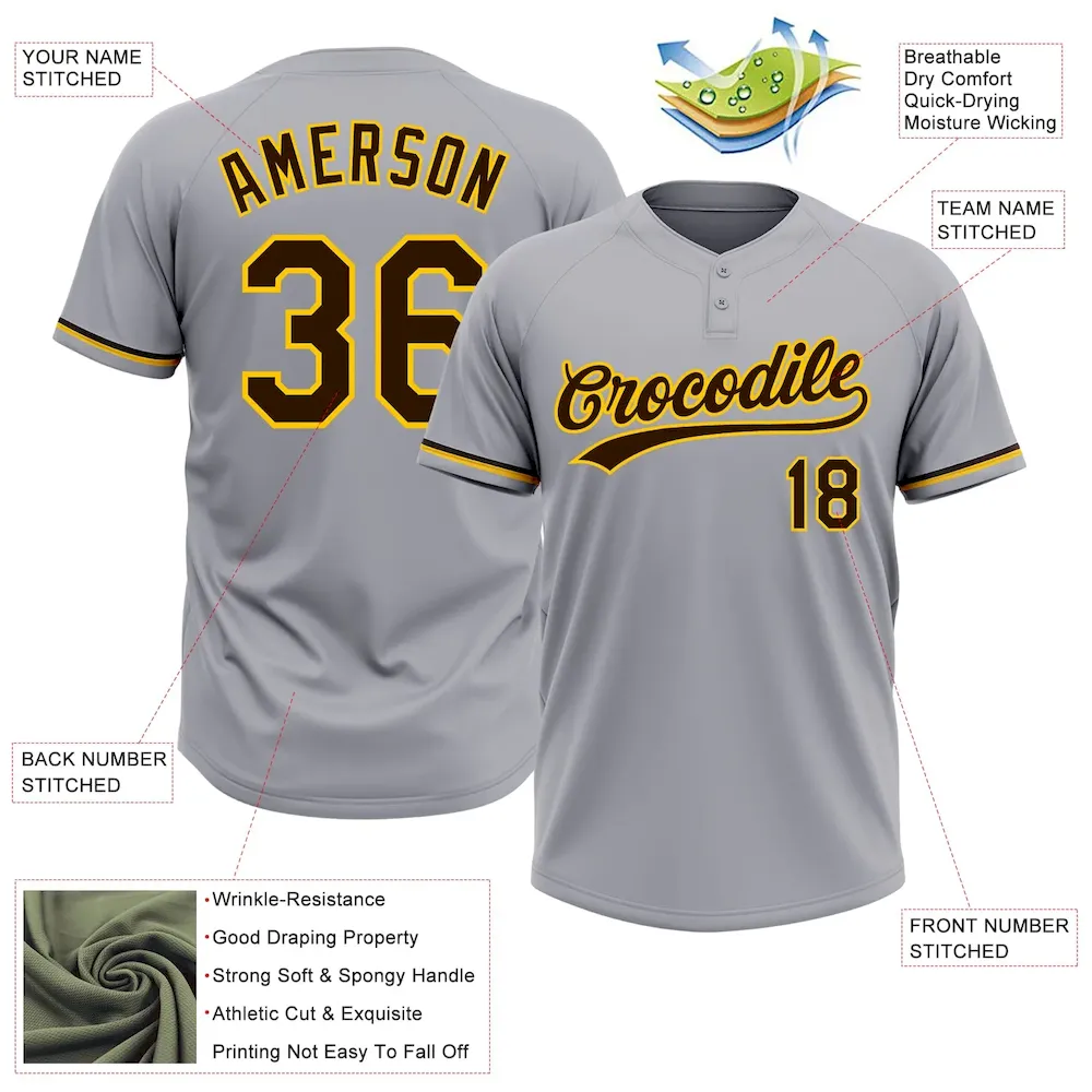 Custom Gray Brown-Yellow Two-Button Unisex Softball Jersey
