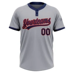 Custom Gray Navy-Red Two-Button Unisex Softball Jersey