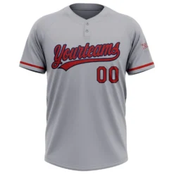 Custom Gray Red-Navy Two-Button Unisex Softball Jersey