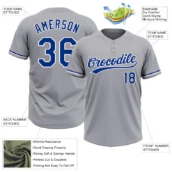 Custom Gray Royal-White Two-Button Unisex Softball Jersey