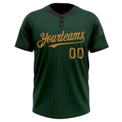 Custom Green Black Pinstripe Old Gold Two-Button Unisex Softball Jersey