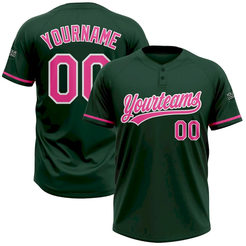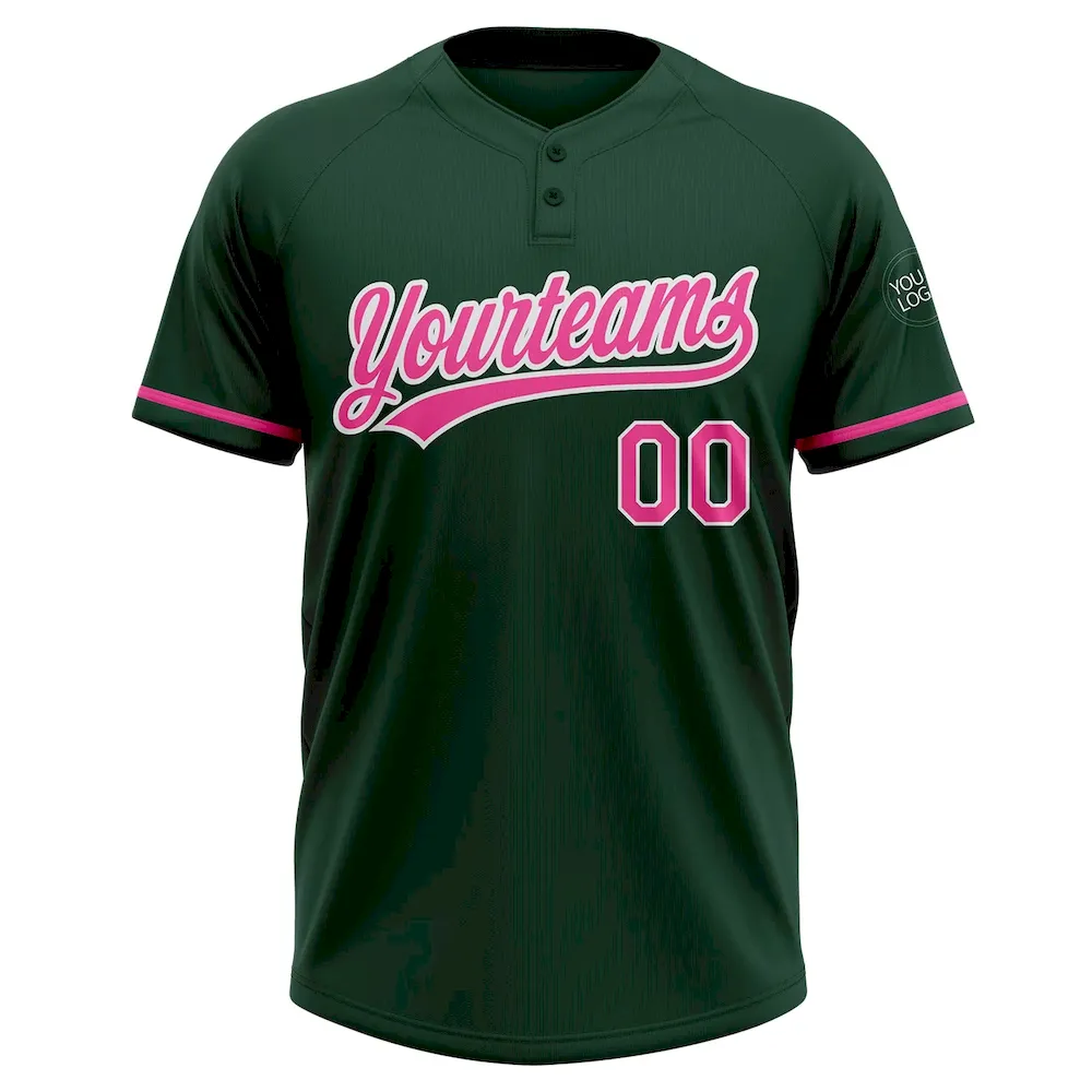 Custom Green Pink-White Two-Button Unisex Softball Jersey