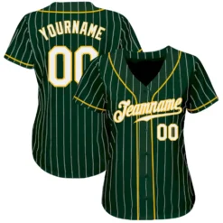 Custom Green White Pinstripe White-Gold Authentic Baseball Jersey