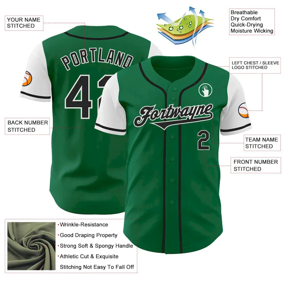 Custom Kelly Green Black-White Authentic Two Tone Baseball Jersey