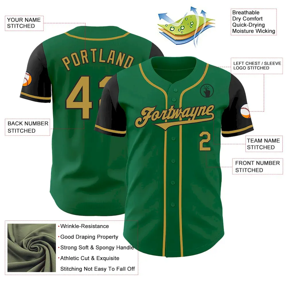 Custom Kelly Green Old Gold-Black Authentic Two Tone Baseball Jersey