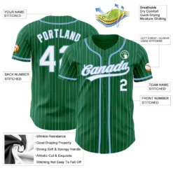 Custom Kelly Green White Pinstripe Light Blue Authentic Baseball Jersey