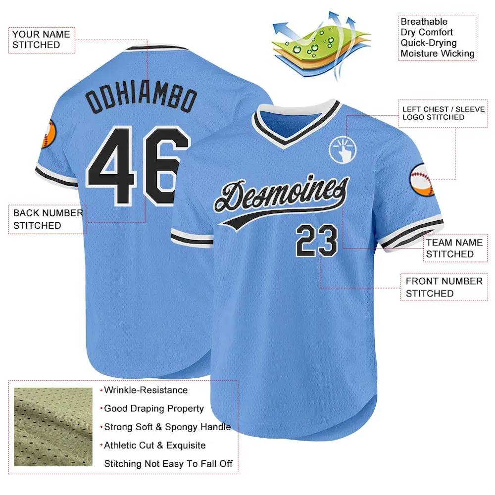 Custom Light Blue Black-White Authentic Throwback Baseball Jersey