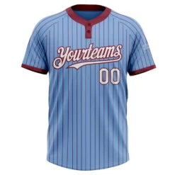 Custom Light Blue Crimson Pinstripe White Two-Button Unisex Softball Jersey