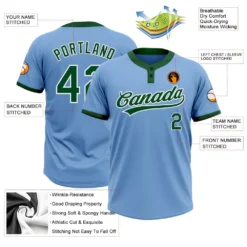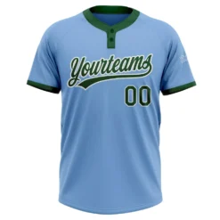 Custom Light Blue Green-White Two-Button Unisex Softball Jersey