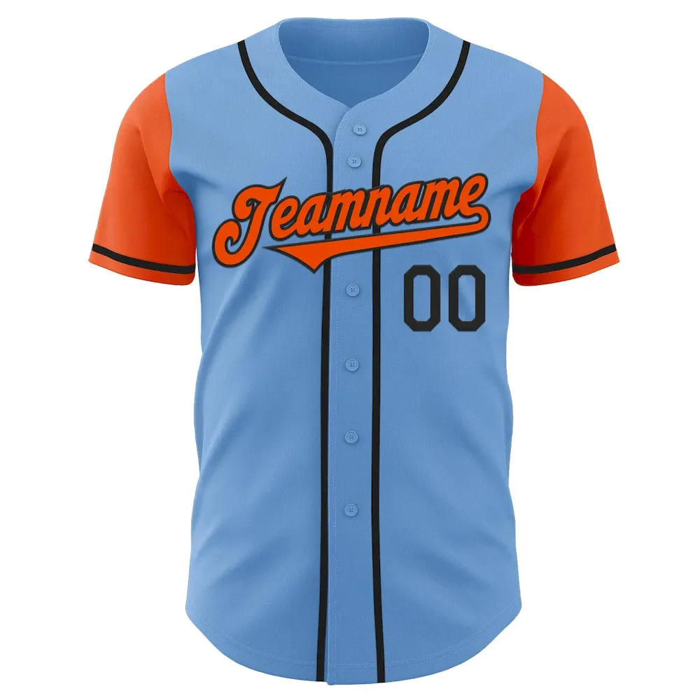 Custom Light Blue Orange-Black Authentic Two Tone Baseball Jersey