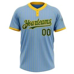 Custom Light Blue Yellow Pinstripe Green Two-Button Unisex Softball Jersey