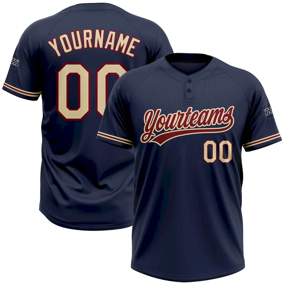 Custom Navy City Cream-Crimson Two-Button Unisex Softball Jersey