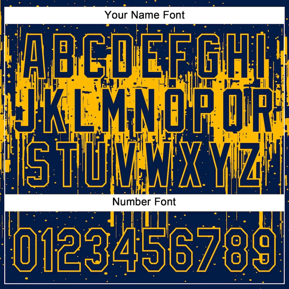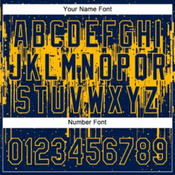 Custom Navy Gold 3D Pattern Dripping Splatter Art Two-Button Unisex Softball Jersey