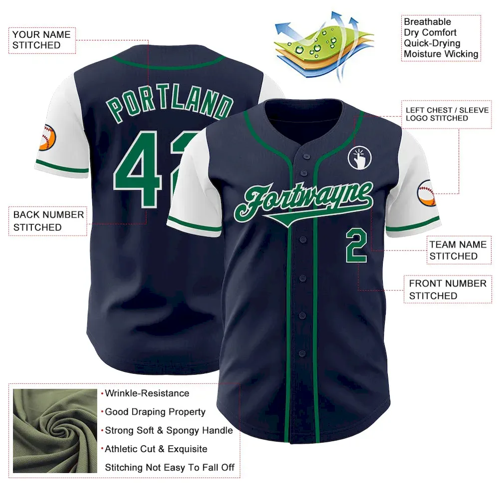 Custom Navy Kelly Green-White Authentic Two Tone Baseball Jersey