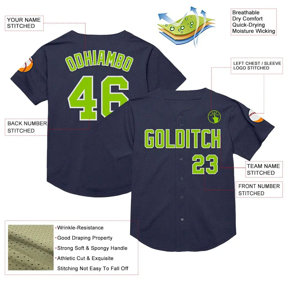 Custom Navy Neon Green-White Mesh Authentic Throwback Baseball Jersey