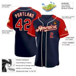 Custom Navy Red-Cream Authentic Raglan Sleeves Baseball Jersey