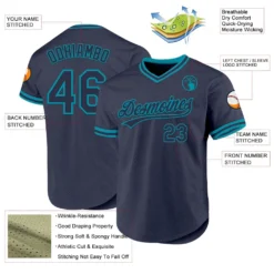 Custom Navy Teal Authentic Throwback Baseball Jersey
