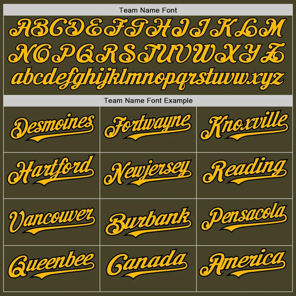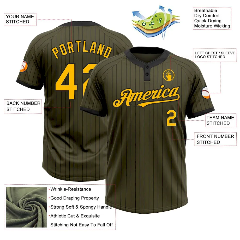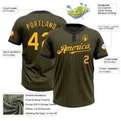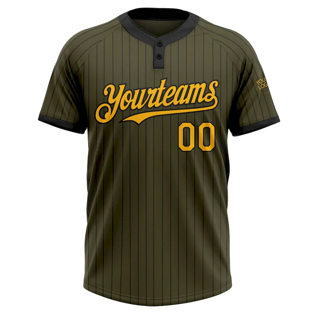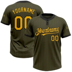 Custom Olive Black Pinstripe Gold Salute To Service Two-Button Unisex Softball Jersey