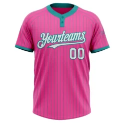 Custom Pink Teal Pinstripe White Two-Button Unisex Softball Jersey