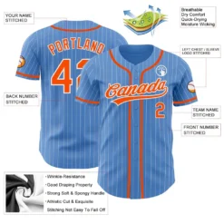 Custom Powder Blue White Pinstripe Orange Authentic Baseball Jersey