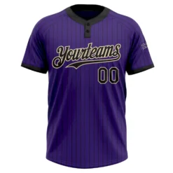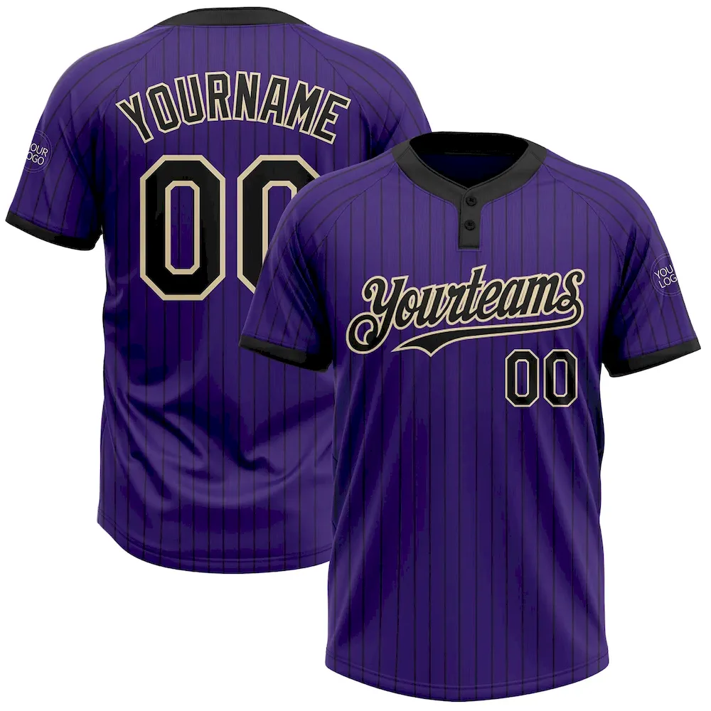 Custom Purple Black Pinstripe Cream Two-Button Unisex Softball Jersey