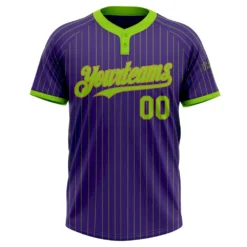 Custom Purple Neon Green Pinstripe Old Gold Two-Button Unisex Softball Jersey