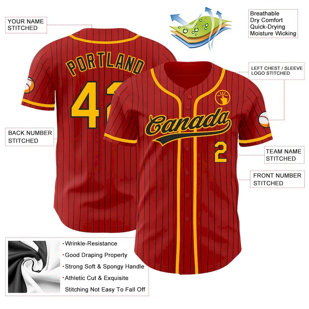 Custom Red Black Pinstripe Gold Authentic Baseball Jersey