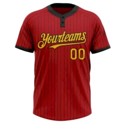 Custom Red Black Pinstripe Gold Two-Button Unisex Softball Jersey