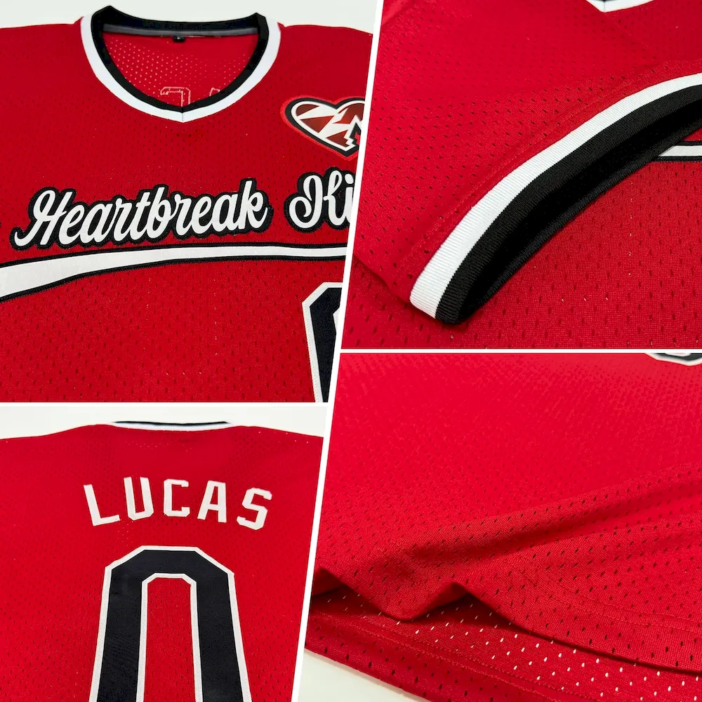 Custom Red Black-White Authentic Throwback Baseball Jersey