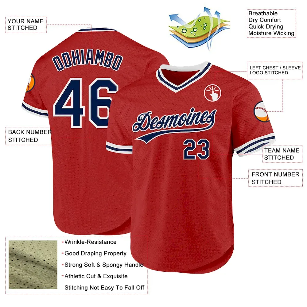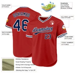 Custom Red Navy-White Authentic Throwback Baseball Jersey