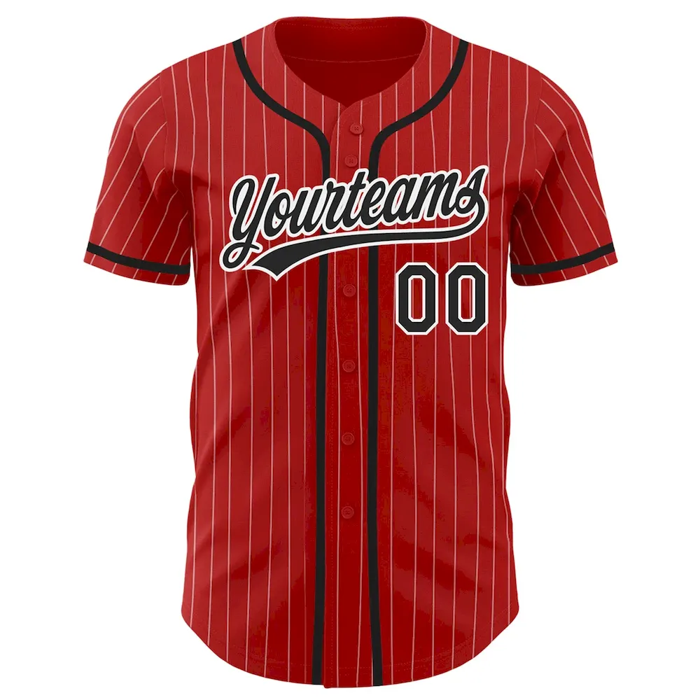 Custom Red White Pinstripe Black Authentic Baseball Jersey