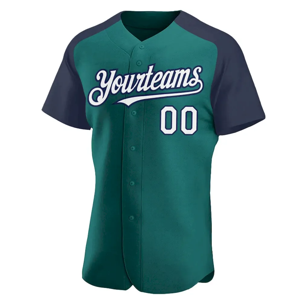 Custom Teal White-Navy Authentic Raglan Sleeves Baseball Jersey