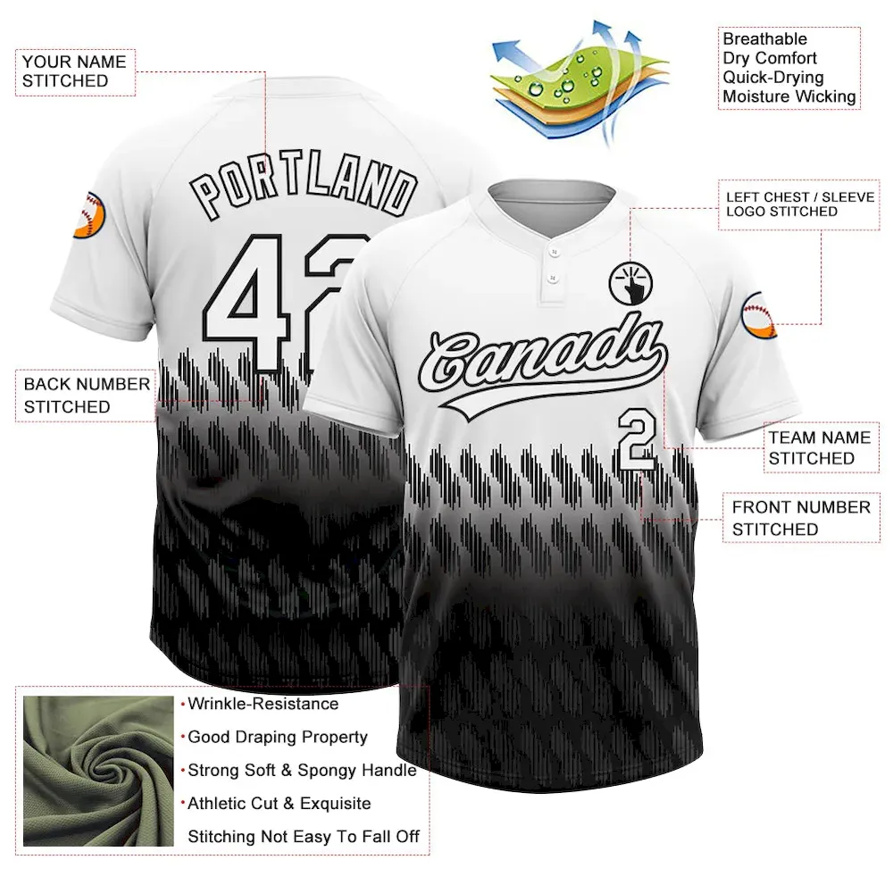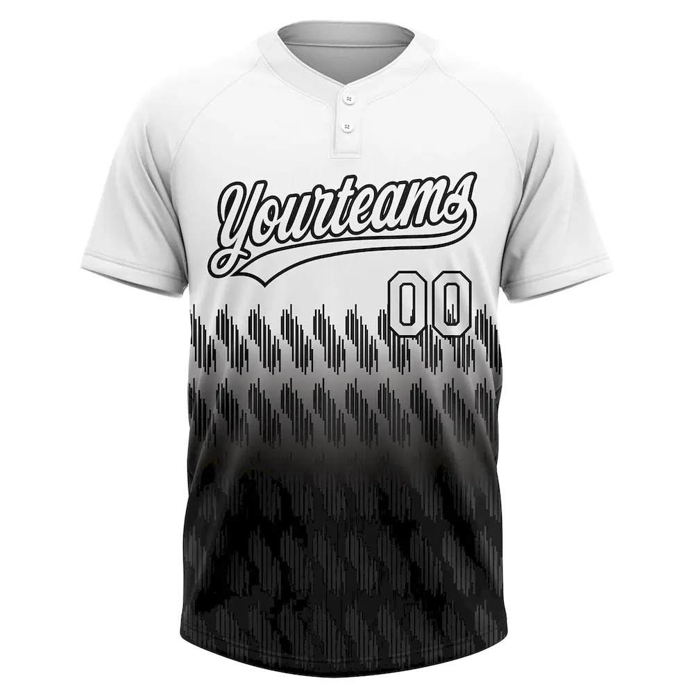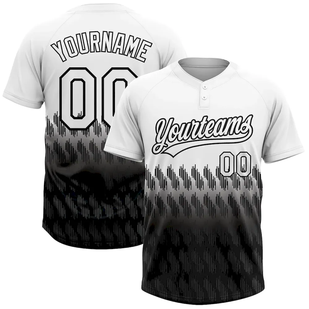 Custom White Black 3D Pattern Lines Two-Button Unisex Softball Jersey