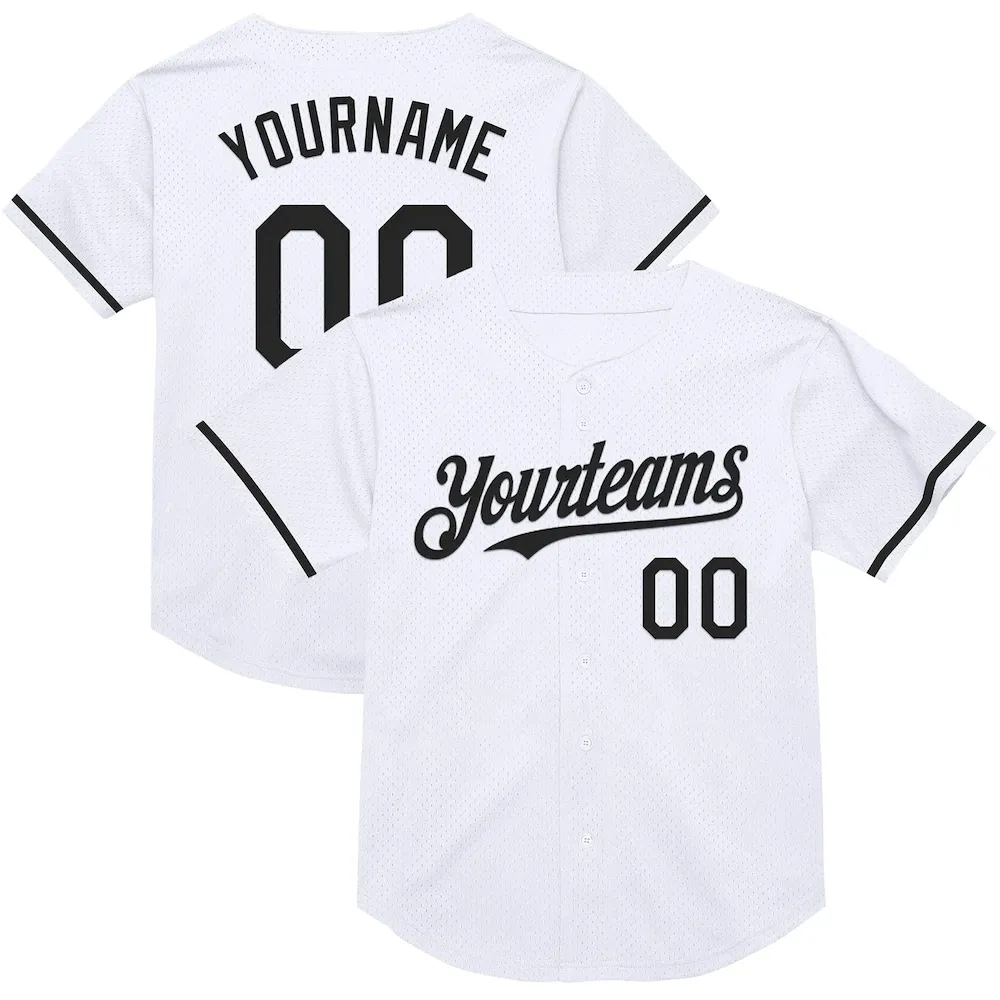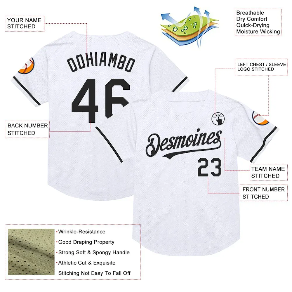 Custom White Black Mesh Authentic Throwback Baseball Jersey
