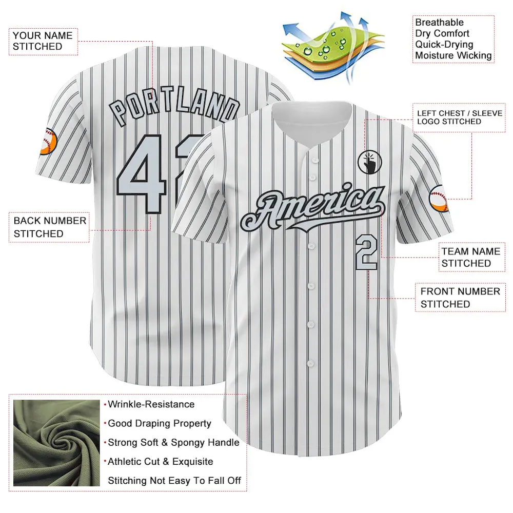 Custom White (Black Silver Pinstripe) Silver-Black Authentic Baseball Jersey