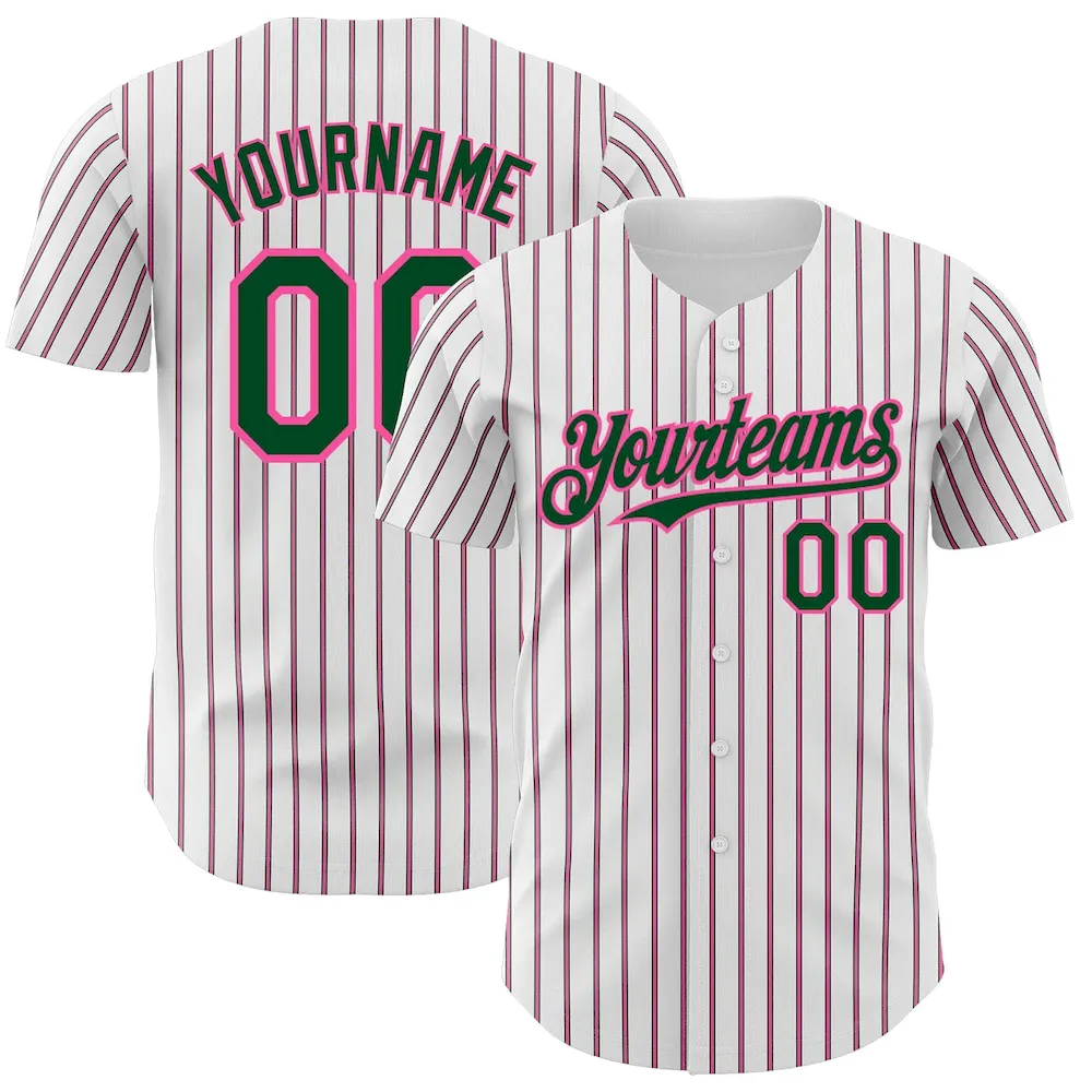 Custom White (Green Pink Pinstripe) Green-Pink Authentic Baseball Jersey