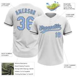 Custom White Light Blue-Steel Gray Two-Button Unisex Softball Jersey