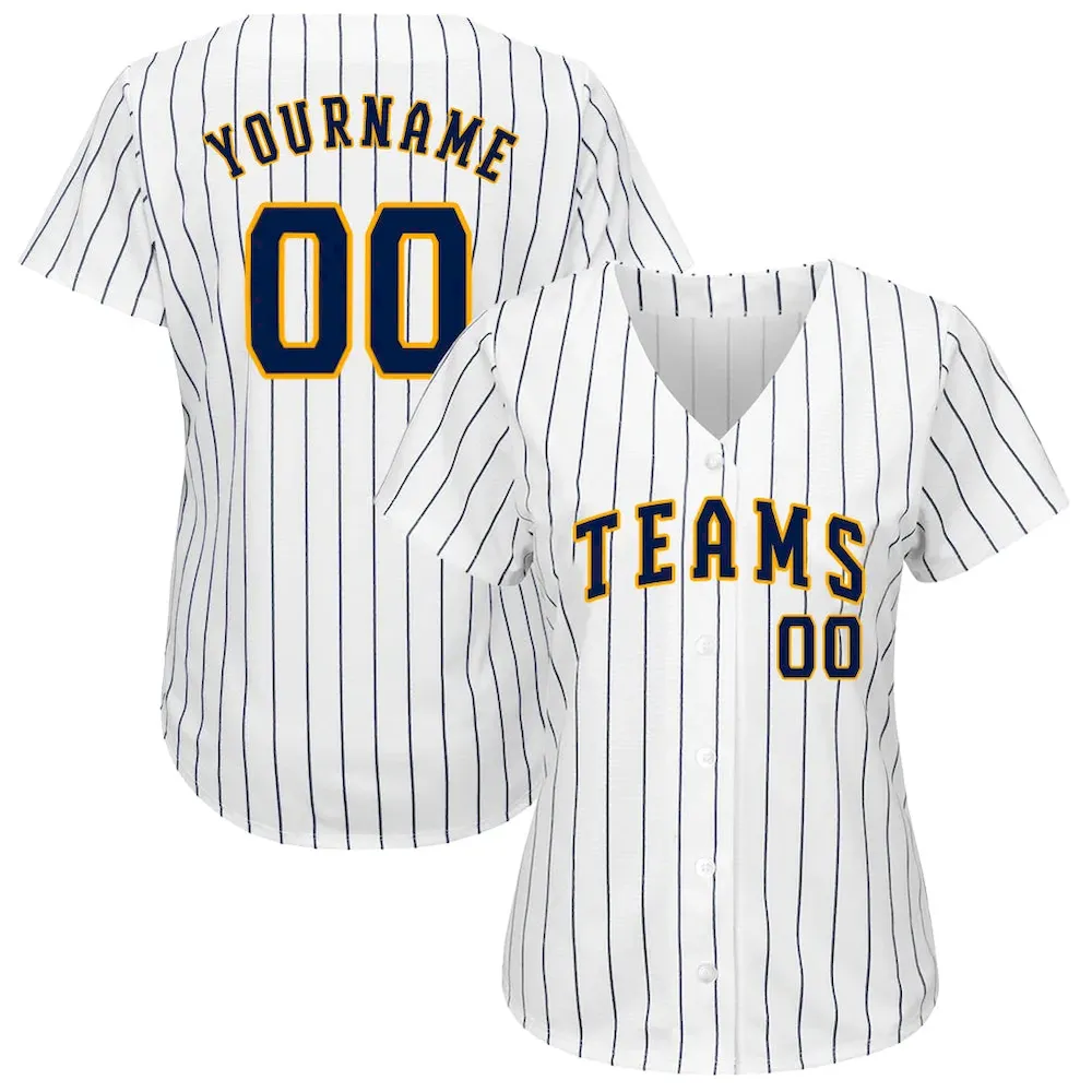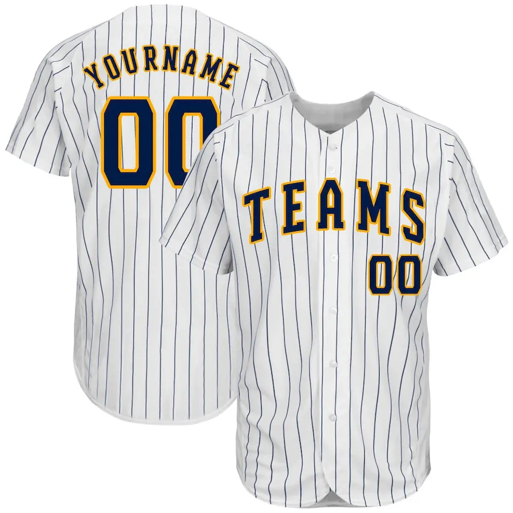 Custom White Navy Pinstripe Navy-Gold Authentic Baseball Jersey