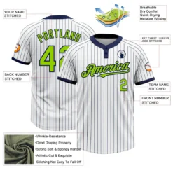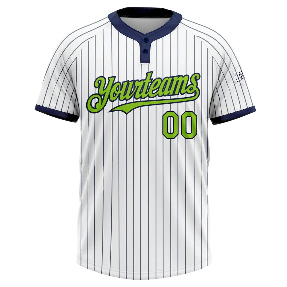 Custom White Navy Pinstripe Neon Green Two-Button Unisex Softball Jersey