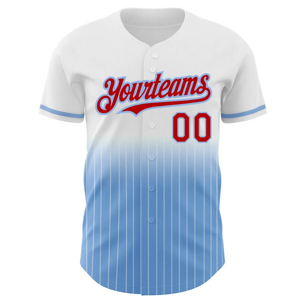 Custom White Pinstripe Red-Light Blue Authentic Fade Fashion Baseball Jersey
