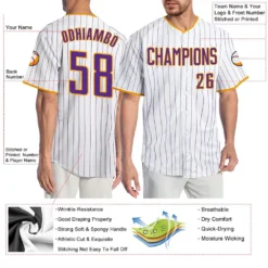 Custom White Purple Pinstripe Purple-Gold Authentic Baseball Jersey