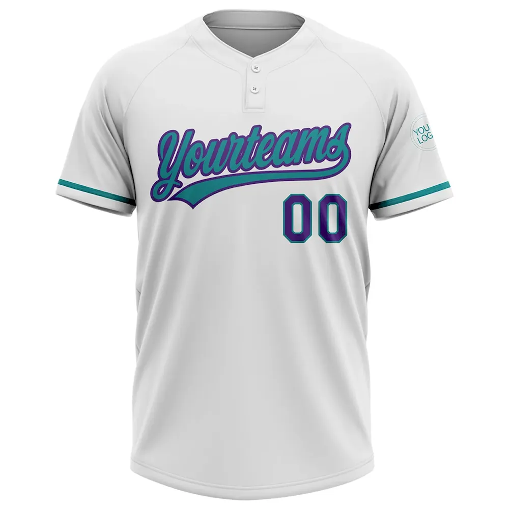 Custom White Purple-Teal Two-Button Unisex Softball Jersey