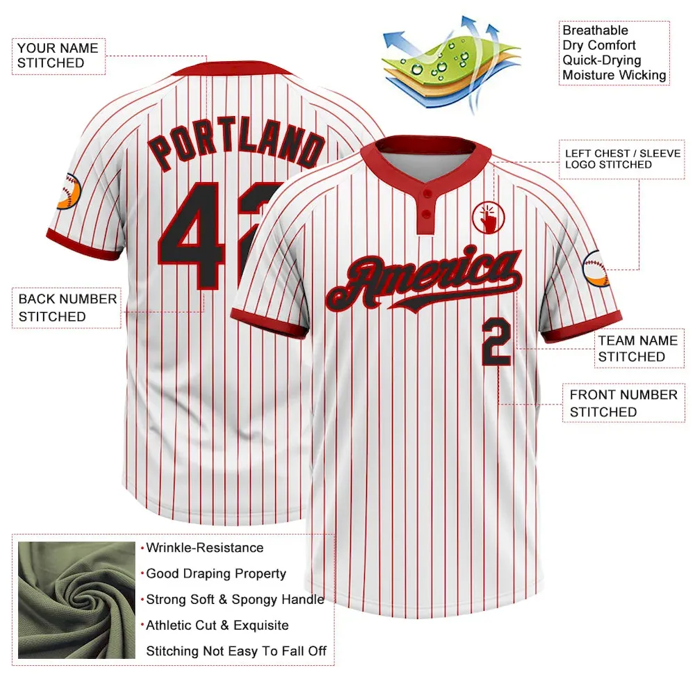 Custom White Red Pinstripe Black Two-Button Unisex Softball Jersey