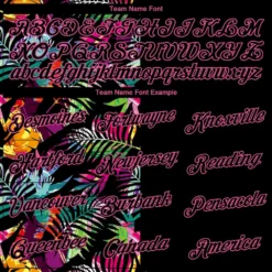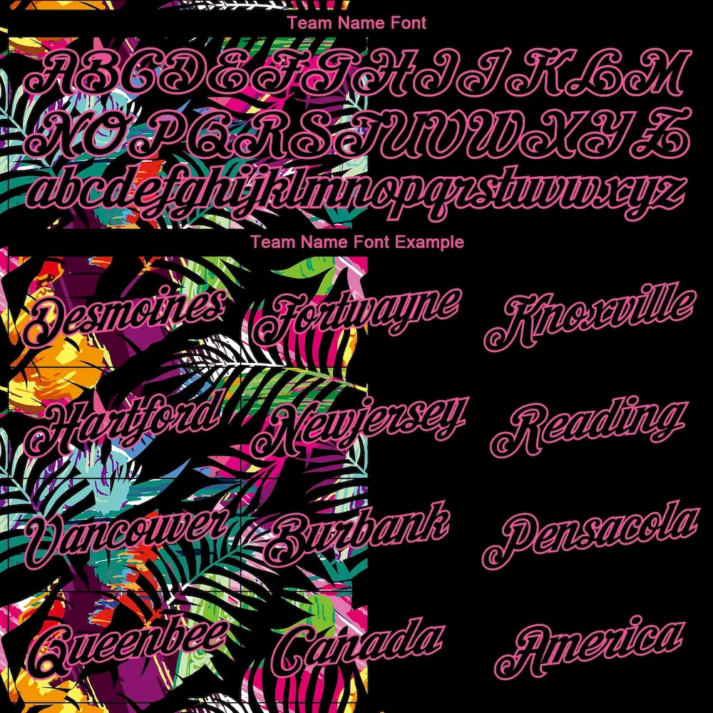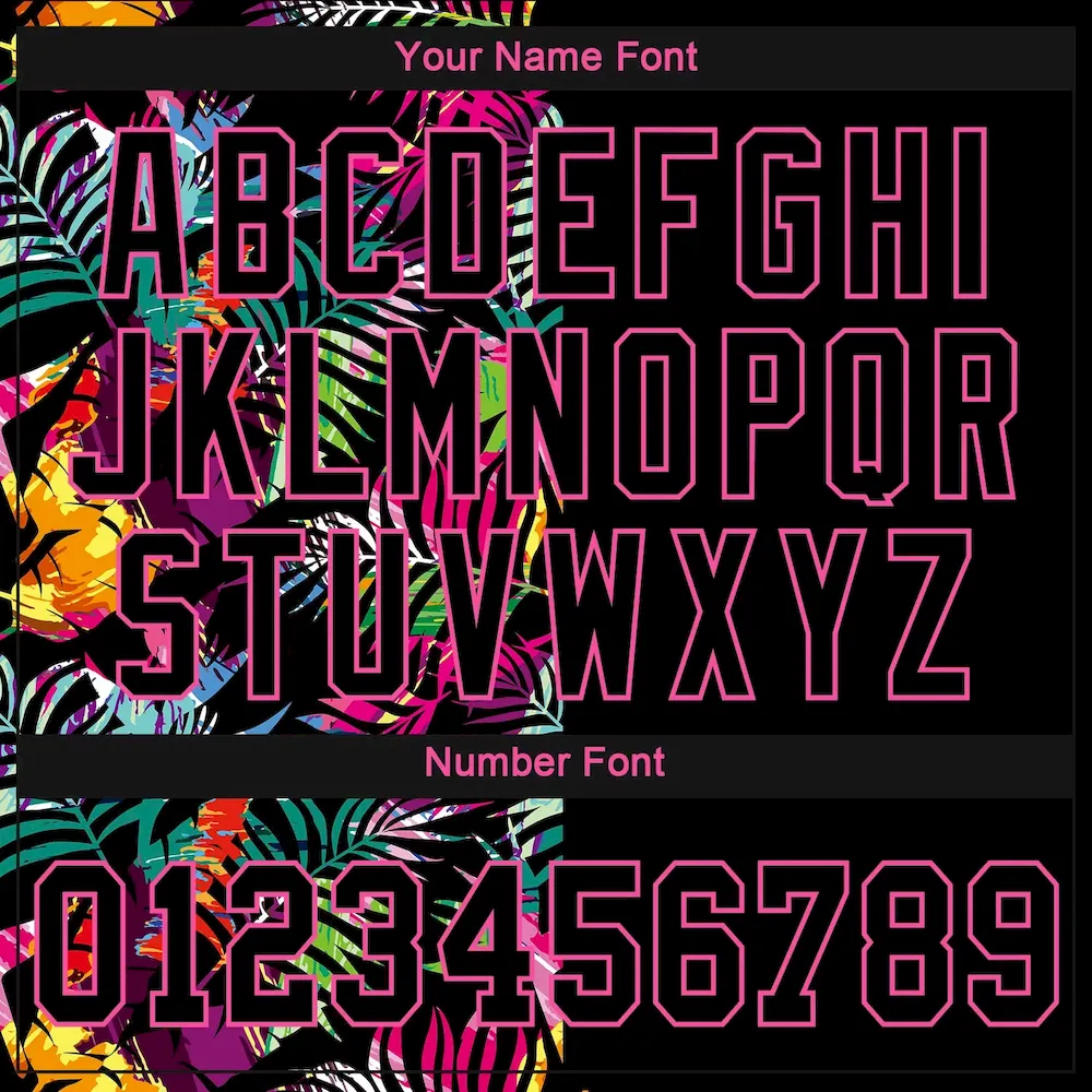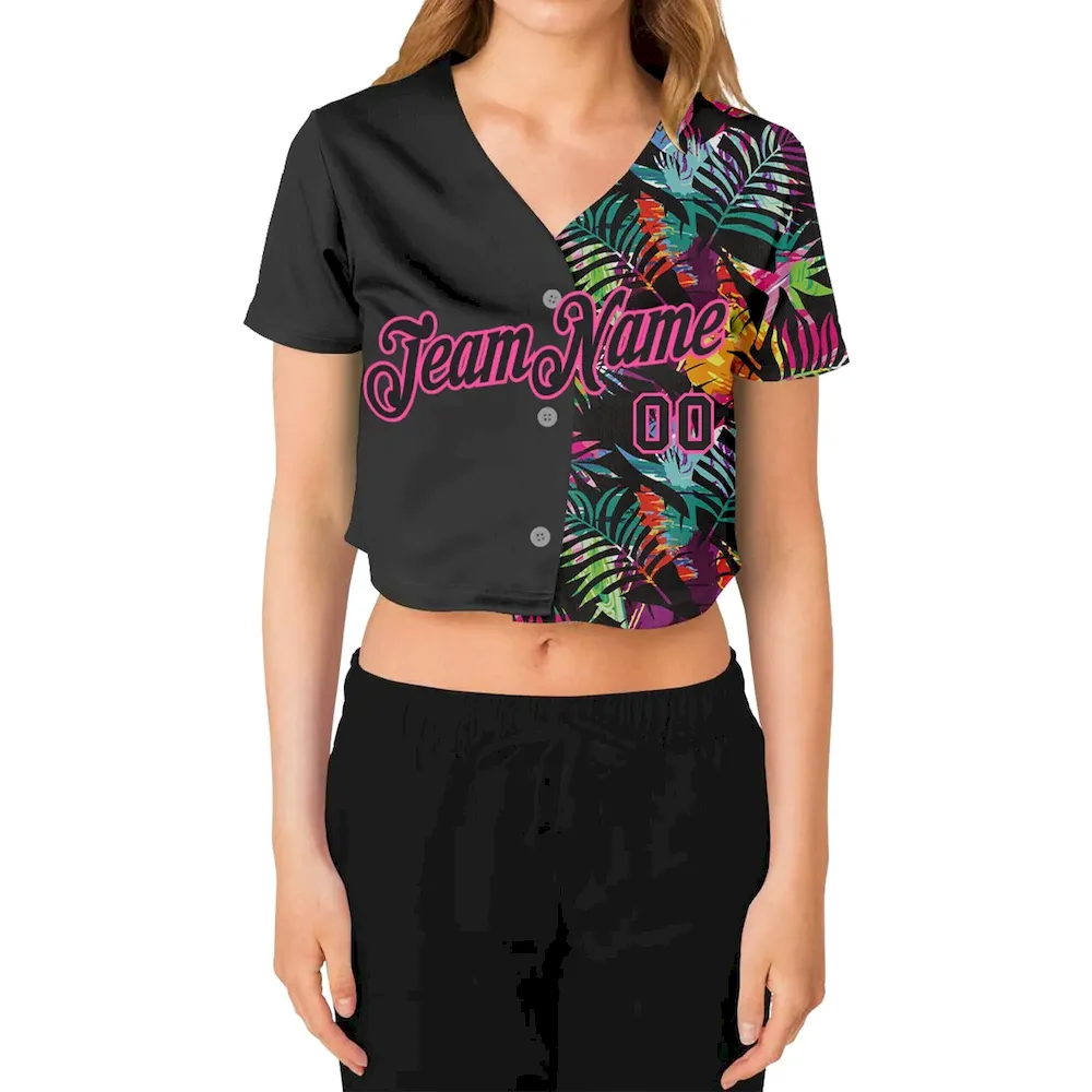 Custom Women’s Black Black-Pink Tropical Palm Leaves 3D V-Neck Cropped Baseball Jersey